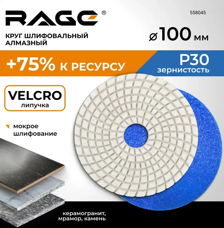 Круг шлифовальный алмазный RAGE by VIRA 100 мм P30.