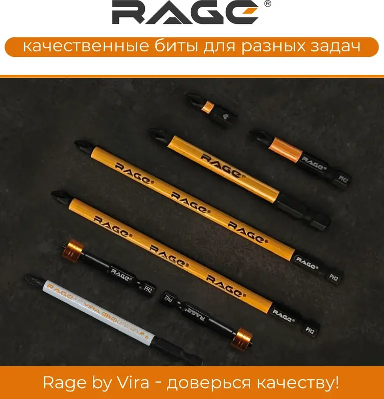 Биты торсионные S2 PZ2x50мм 10 шт RAGE by VIRA