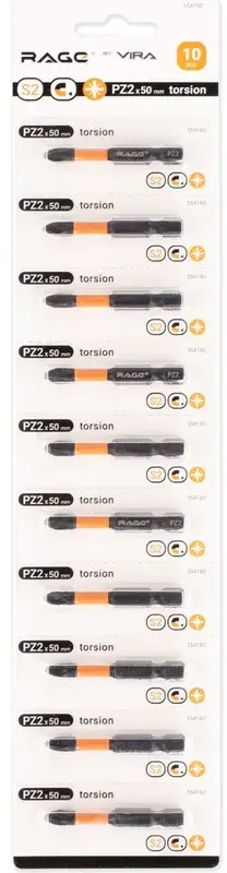 Биты торсионные S2 PZ2 x 50 мм 10 шт RAGE 554160; УТ-00000233