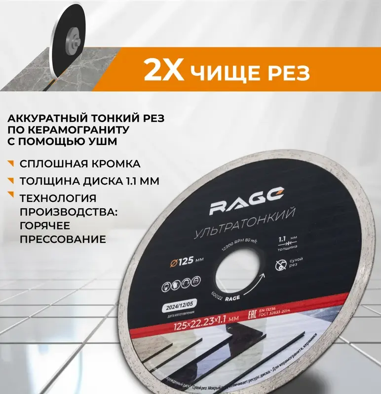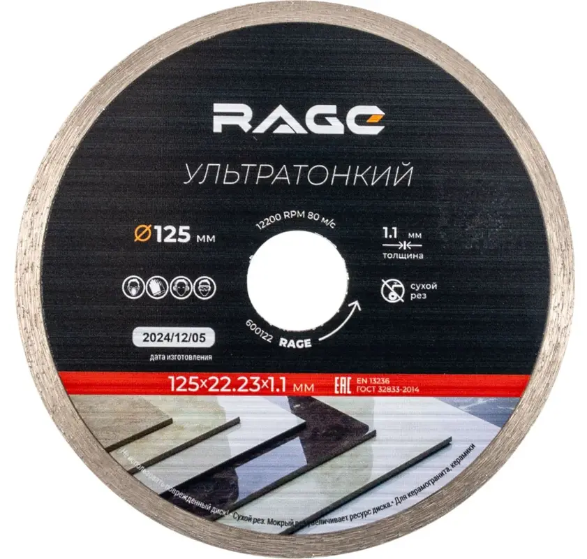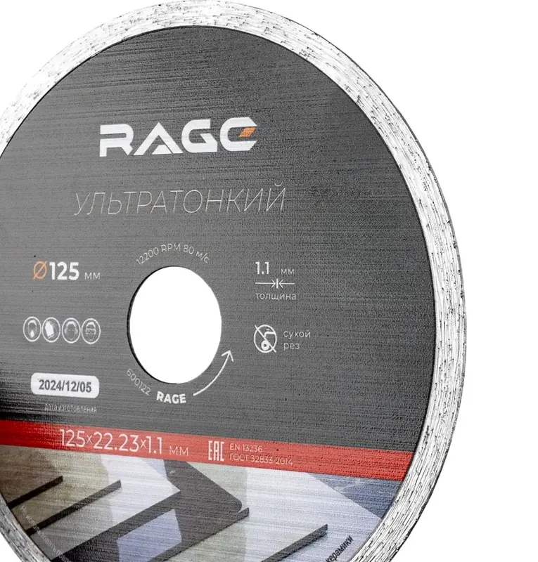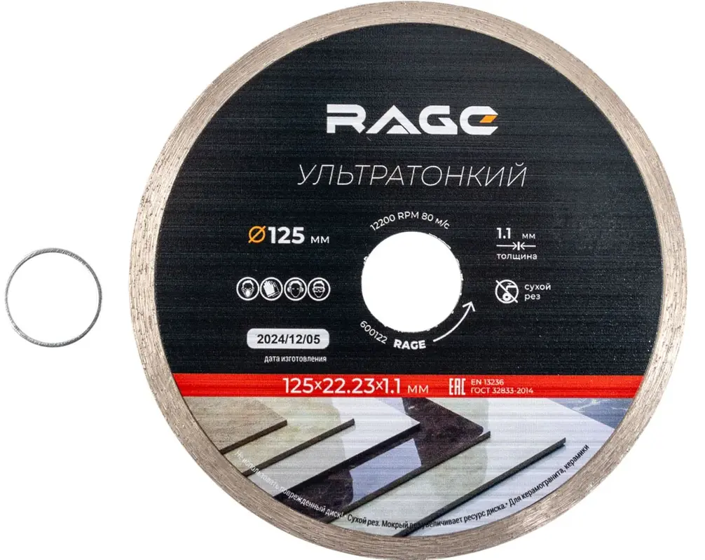 Диск алмазный по керамике сплошной ультратонкий 125 мм RAGE