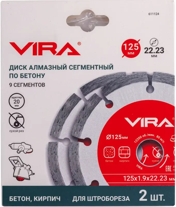 Диск алмазный сегментный 125 мм по бетону, мрамору, кирпичу 2 ШТУКИ VIRA 611124; УТ-00000191