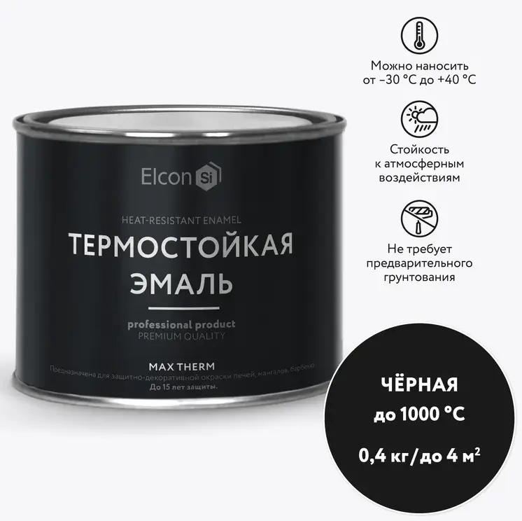 Эмаль термостойкая черная 1000℃ 0,4кг Elcon Max Therm 00-00002903; 11609166