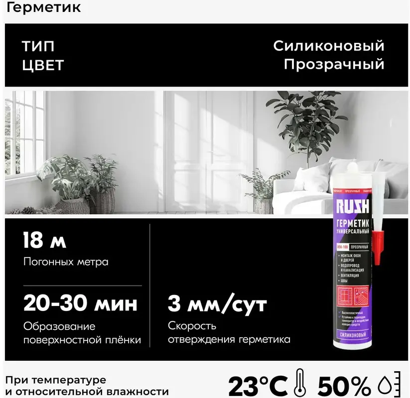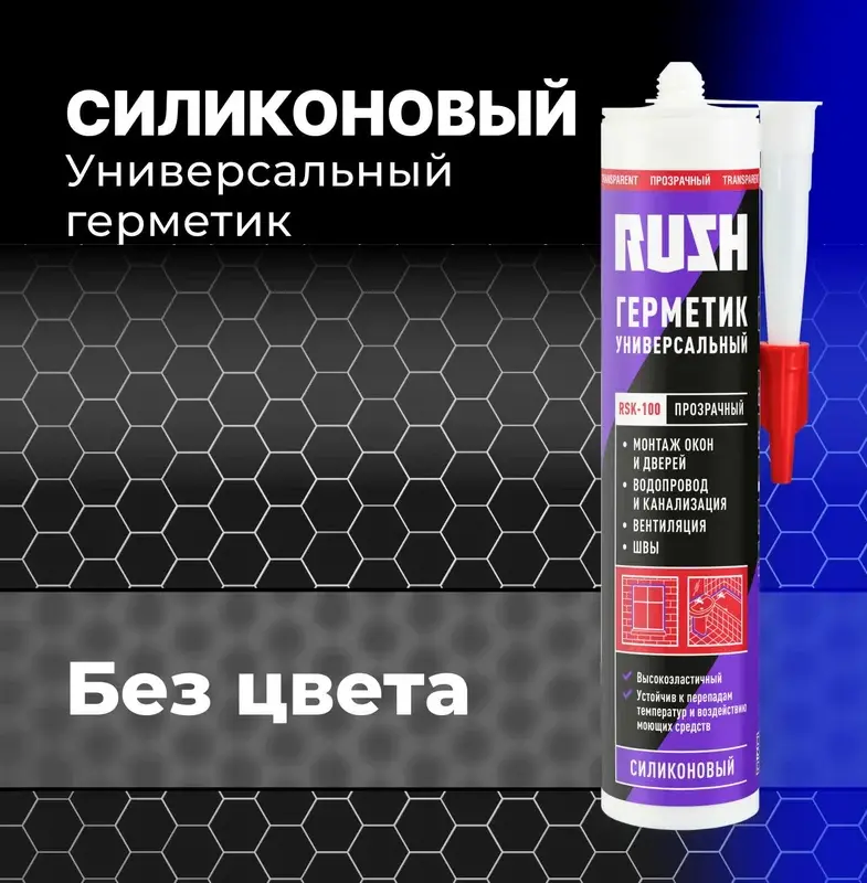 Герметик силиконовый прозрачный 230 мл RUSH RSK-100; 11613460