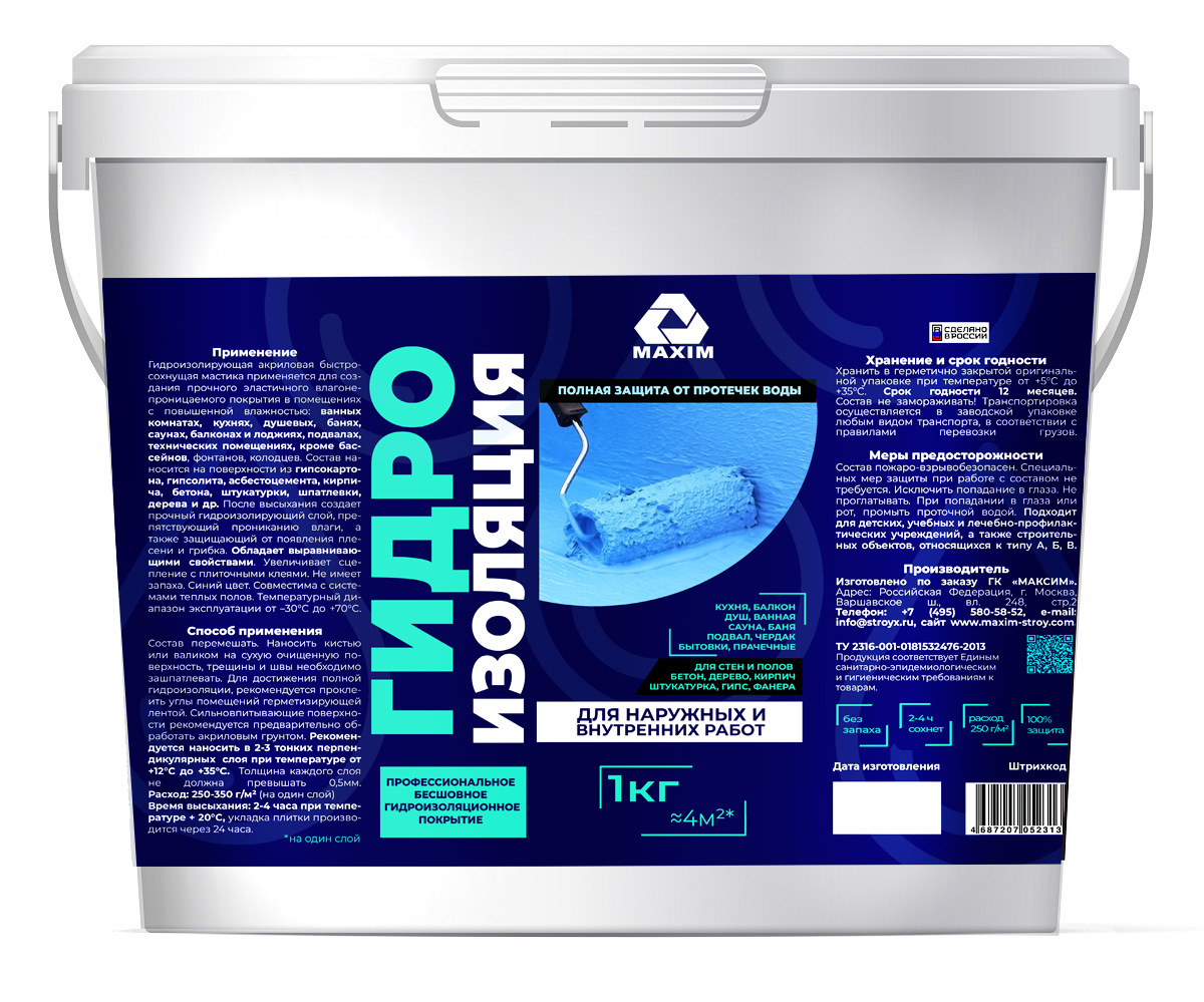 Гидроизоляция универсальная полиакриловая мастика 1 кг MAXIM; 00-00000139