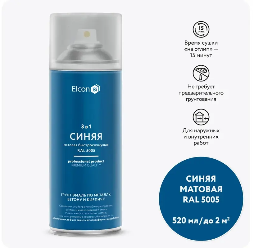 Грунт-эмаль по ржавчине 3-в-1 матовая синяя 520мл аэрозоль Elcon 00-00462569; 11613495