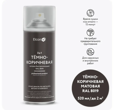 Грунт-эмаль по ржавчине 3-в-1 матовая темно-коричневая 520мл аэрозоль Elcon 00-00750190; 11613494