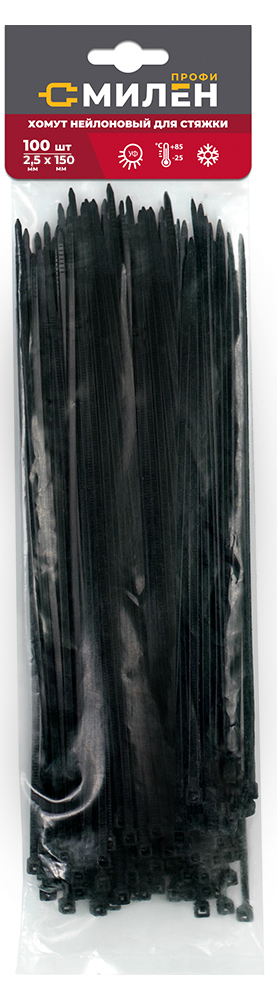 Хомуты нейлоновые для стяжки 2,5х150мм, черные 100 штук Милен 143533; 11615176
