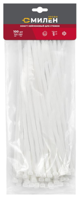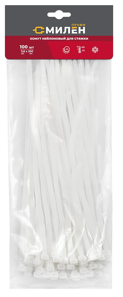Хомуты нейлоновые для стяжки 3,6х250мм, белые 100 штук Милен 143528; 11615174