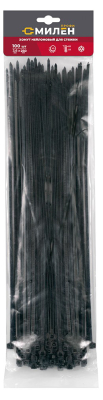 Хомуты нейлоновые для стяжки 3,6х250мм, черные 100 штук Милен 143537; 11615179