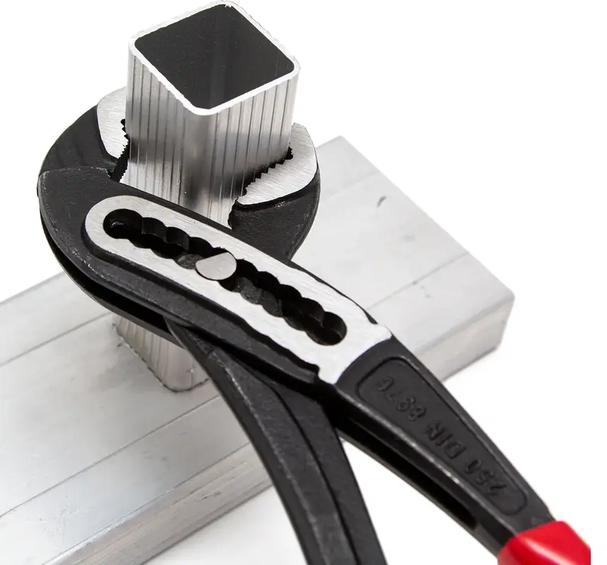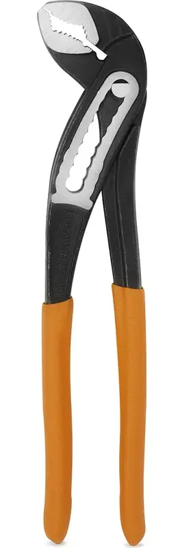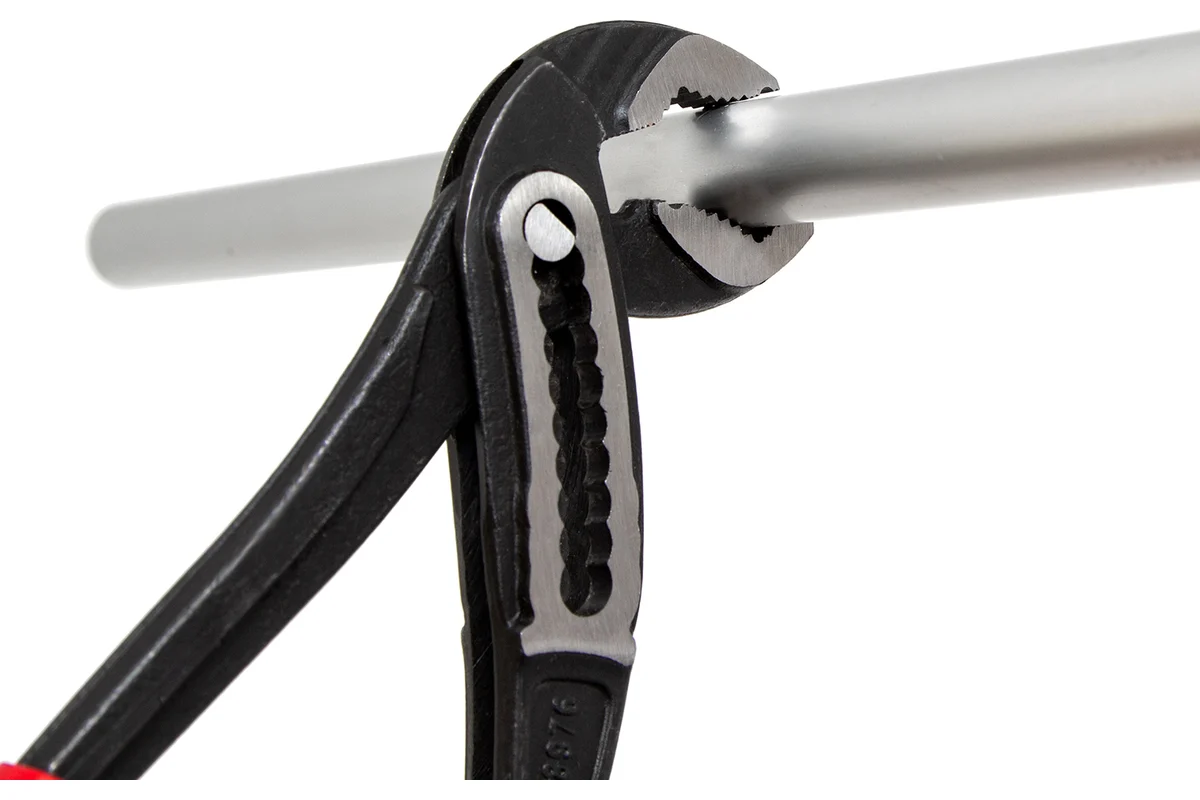 Клещи переставные используются для захвата и удержания деталей, крепежа или труб круглого, квадратного и шестигранного сечения. Подойдут для монтажа сантехнического, отопительного и вентиляционного оборудования. Полукруглый переставной механизм не только увеличивает ширину зева, но также позволяет работать инструментом одной рукой. Рабочая часть клещей выполнена из высокоуглеродистой стали CrV. На рабочих губках есть закаленные зубцы, которые обеспечивают надежный захват. Клещи подойдут для опрессовки и гибки деталей. Рукоятки клещей покрыты антискользящей упругой резиной, не натирают ладони при длительном использовании.