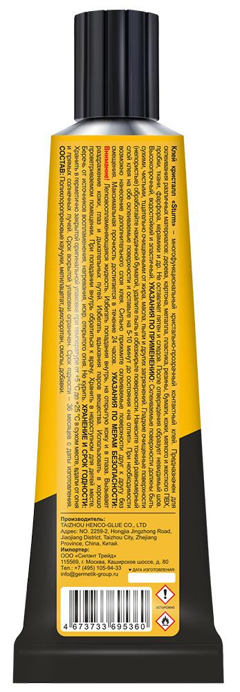 Клей кристалл «Sturm» – многофункциональный кристально-прозрачный контактный клей на основе синтетических каучуков в органических растворителях. Предназначен для склеивания широкого спектра материалов в различных сочетаниях: дерева, картона, металла, пластика, резины, бумаги, кожи, мягкого и жесткого ПВХ, пробки, ткани, фарфора, керамики и др.- Область применения - Для наружных и внутренних работ