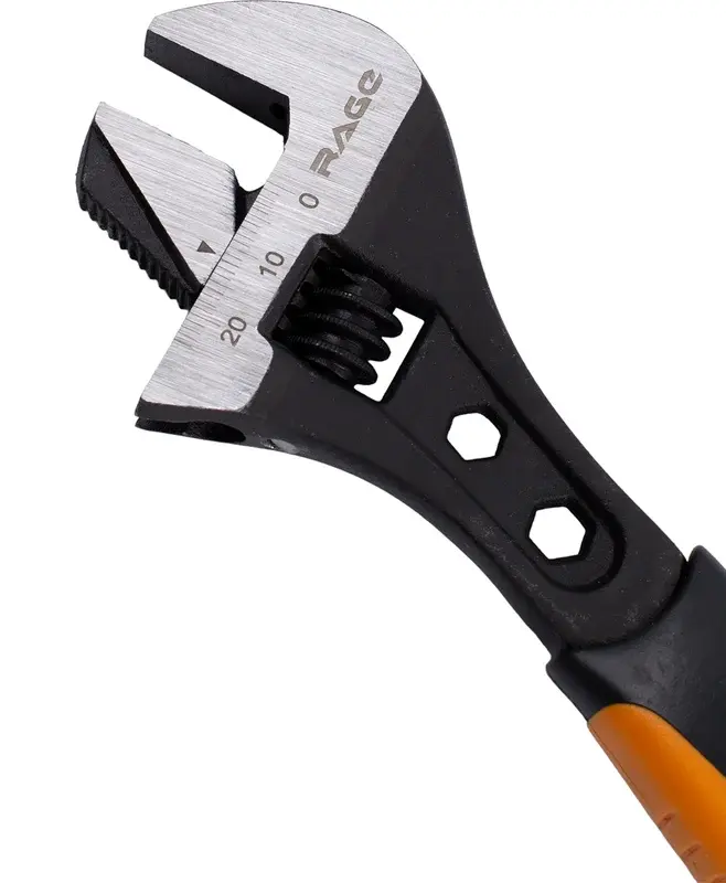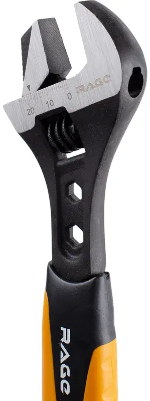 Разводной ключ 200мм (8”) RAGE служит для монтажа и демонтажа многогранного крепежа, болтов, гаек при установке подвижной губки в традиционном для ключей положении и для удержания круглых профилей, например труб, в случае разворота губки противоположной стороной. Один инструмент объединяет в себе и гаечные ключи раскрытием до 30мм и клещи для удержания труб, это значительно облегчает ход ремонтных и сборочных работ. И благодаря этом инструмент получил широкое применение при выполнении сантехнических работ, ремонте автомобильного транспорта и на производстве, а так же при мелком бытовом ремонте.