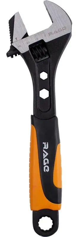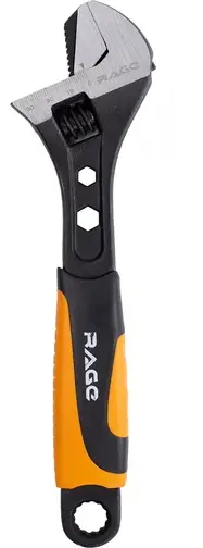Разводной ключ сентехнический 250мм (10”) RAGE служит для монтажа и демонтажа многогранного крепежа, болтов, гаек при установке подвижной губки в традиционном для ключей положении и для удержания круглых профилей, например труб, в случае разворота губки противоположной стороной. Один инструмент объединяет в себе и гаечные ключи раскрытием до 35мм и клещи для удержания труб, это значительно облегчает ход ремонтных и сборочных работ. И благодаря этом инструмент получил широкое применение при выполнении сантехнических работ, ремонте автомобильного транспорта и на производстве, а так же при мелком бытовом ремонте.