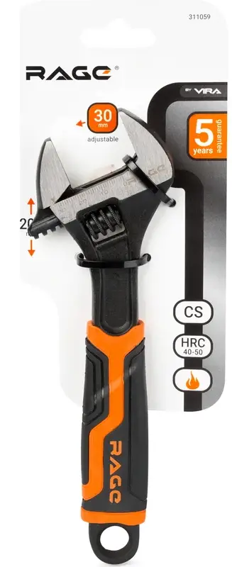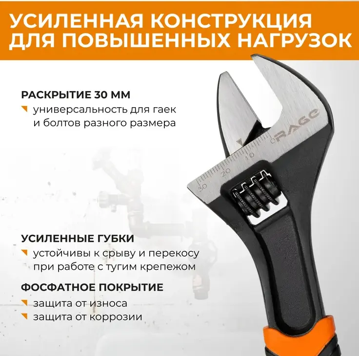 Ключ разводной усиленный 200 мм, раскрытие до 30 мм RAGE 311059; УТ-00000310