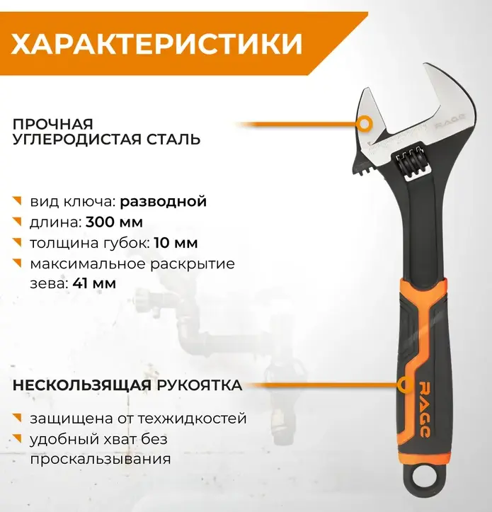Ключ разводной усиленный 300мм RAGE 311057; УТ-00000312