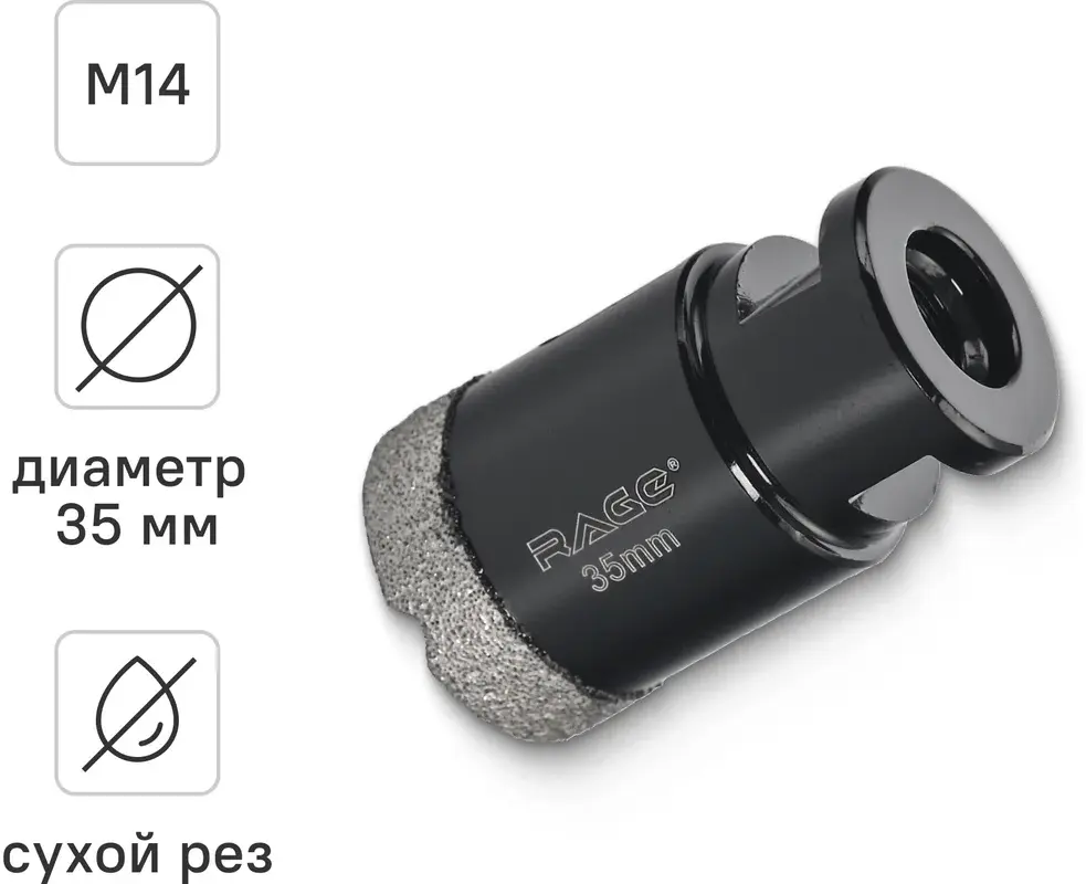 Коронка алмазная 35 мм по керамограниту для УШМ, сухое сверление RAGE 559522; УТ-00000230