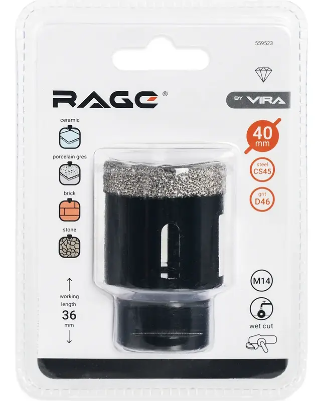 Коронка алмазная для УШМ по керамике 40 мм RAGE by VIRA