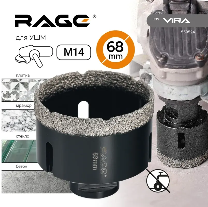 Коронка алмазная для УШМ по керамике 68 мм RAGE by VIRA
