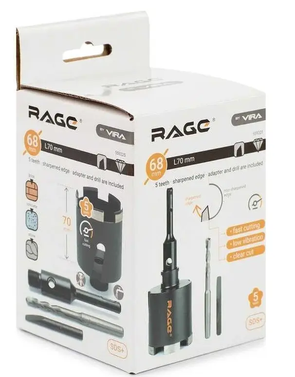 Коронка алмазная по бетону для подрозетников 68 мм RAGE by VIRA