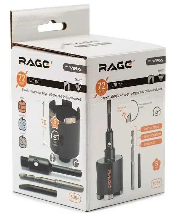 Коронка алмазная по бетону для подрозетников 72 мм RAGE by VIRA