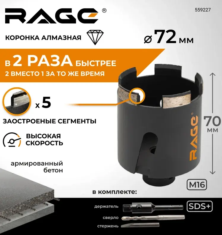 Коронка алмазная по бетону 72 мм для подрозетников RAGE 559227; УТ-00000198