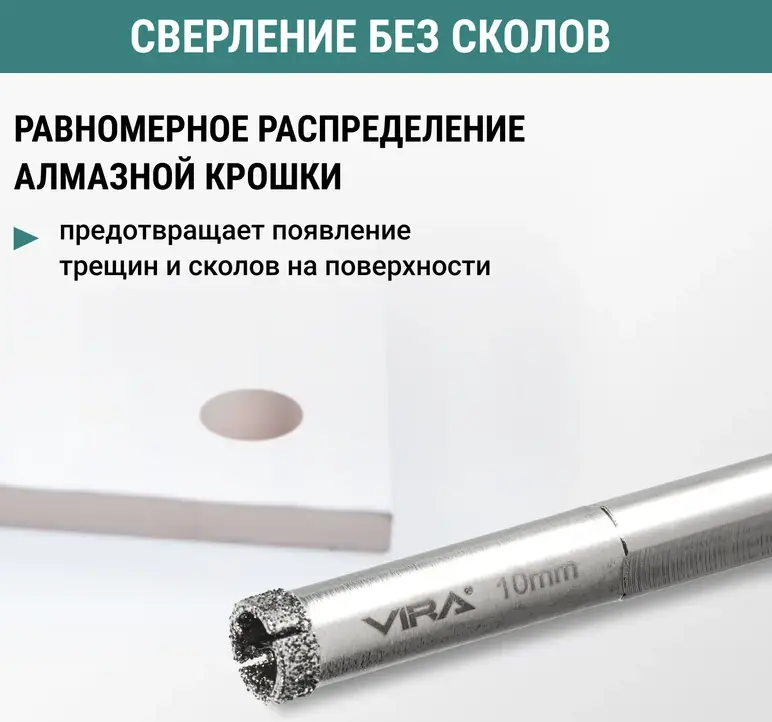 Коронка алмазная по керамике VIRA 10мм трехгранный хвостовик