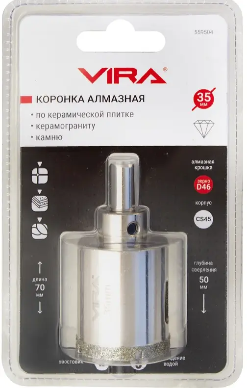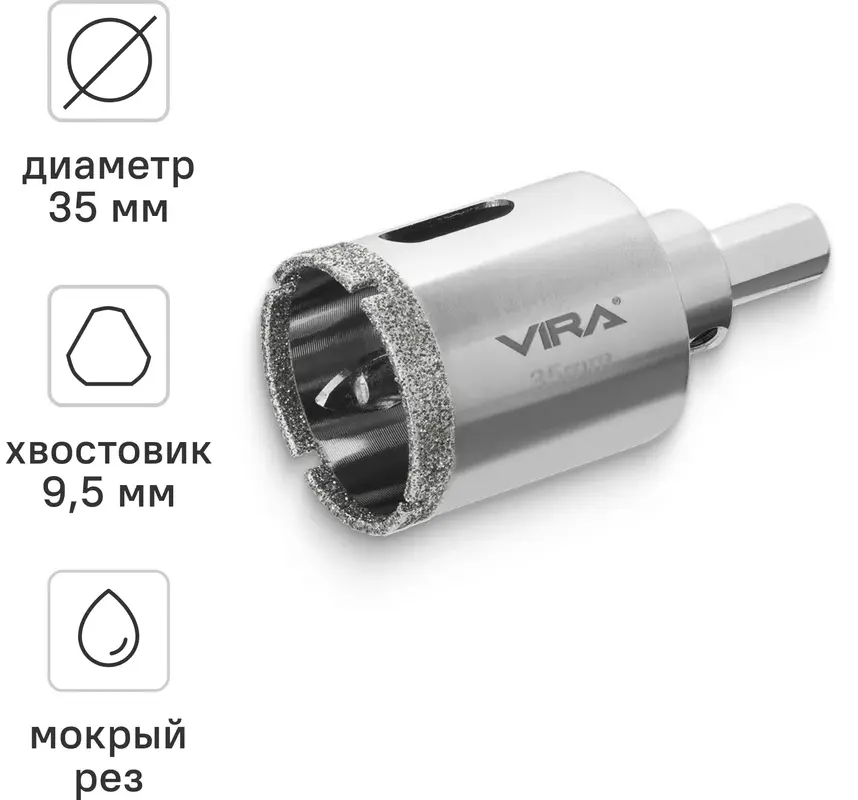 Коронка алмазная по керамике 35 мм трехгранный хвостовик VIRA 559504; УТ-00000211