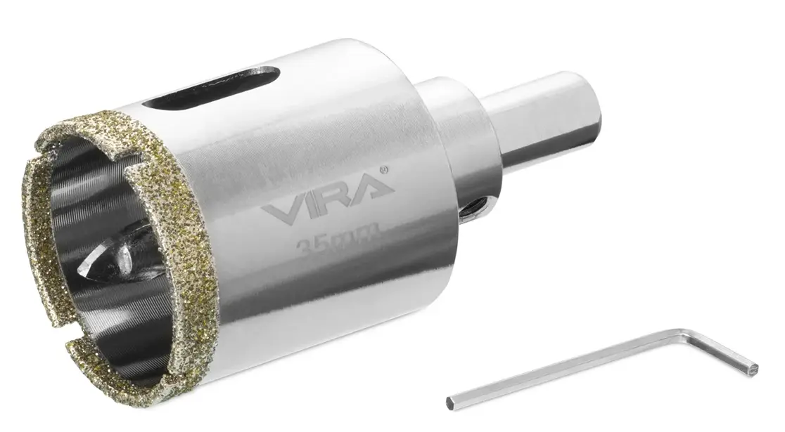 Коронка алмазная по керамике VIRA 35 мм трехгранный хвостовик