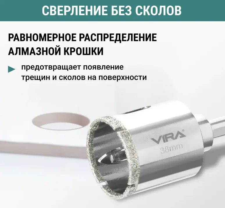 Коронка алмазная по керамике VIRA 38 мм трехгранный хвостовик