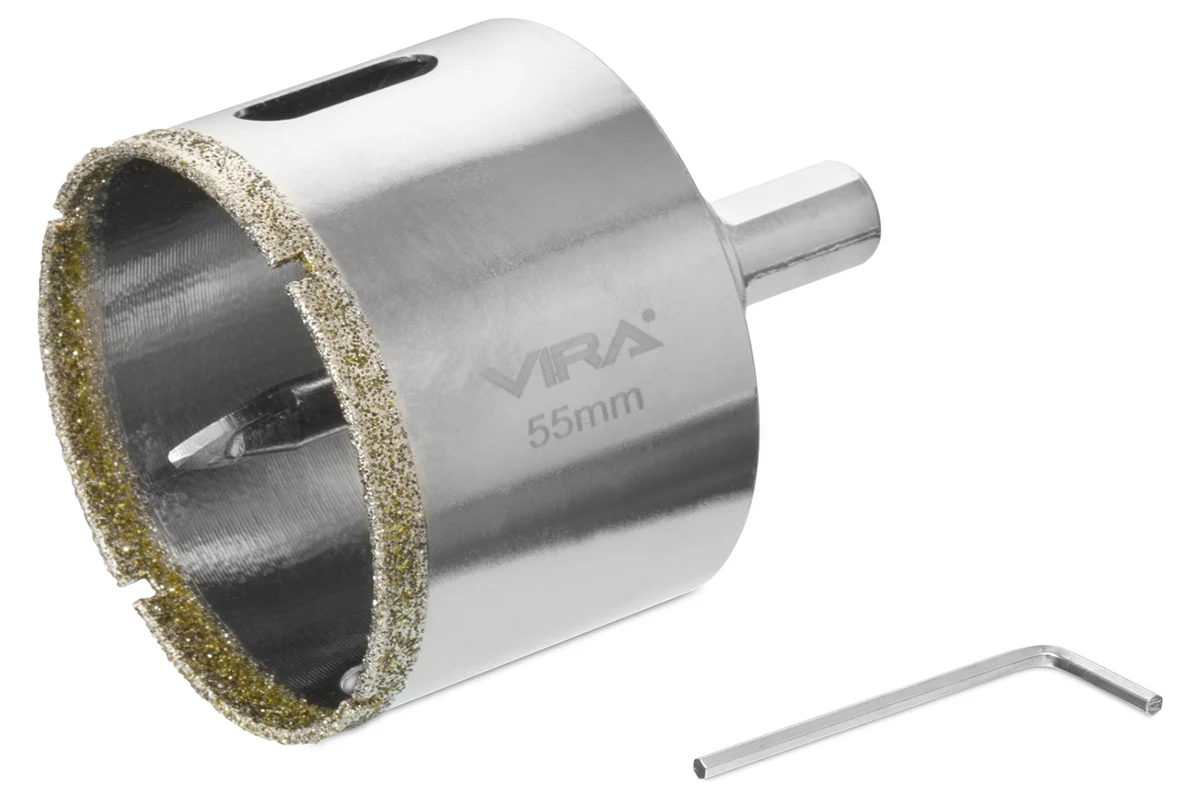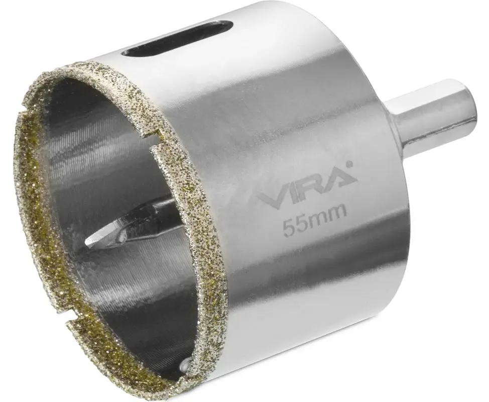 Коронка алмазная по керамике VIRA 55 мм трехгранный хвостовик