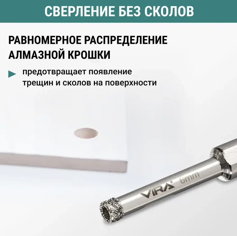 Коронка алмазная по керамике VIRA 6мм трехгранный хвостовик