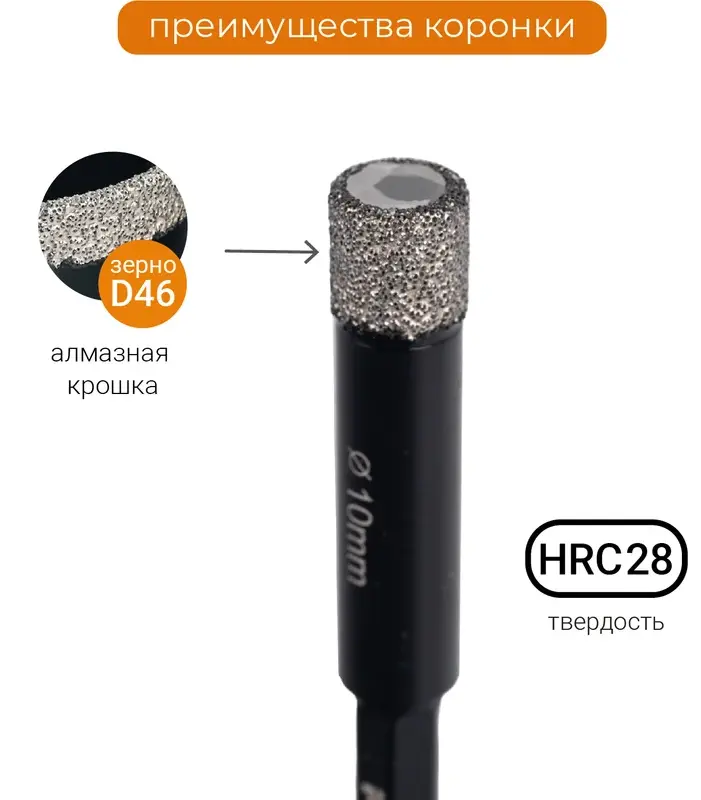Коронка алмазная по керамограниту 10мм с шестигранным хвостовиком RAGE 559533; УТ-00000239