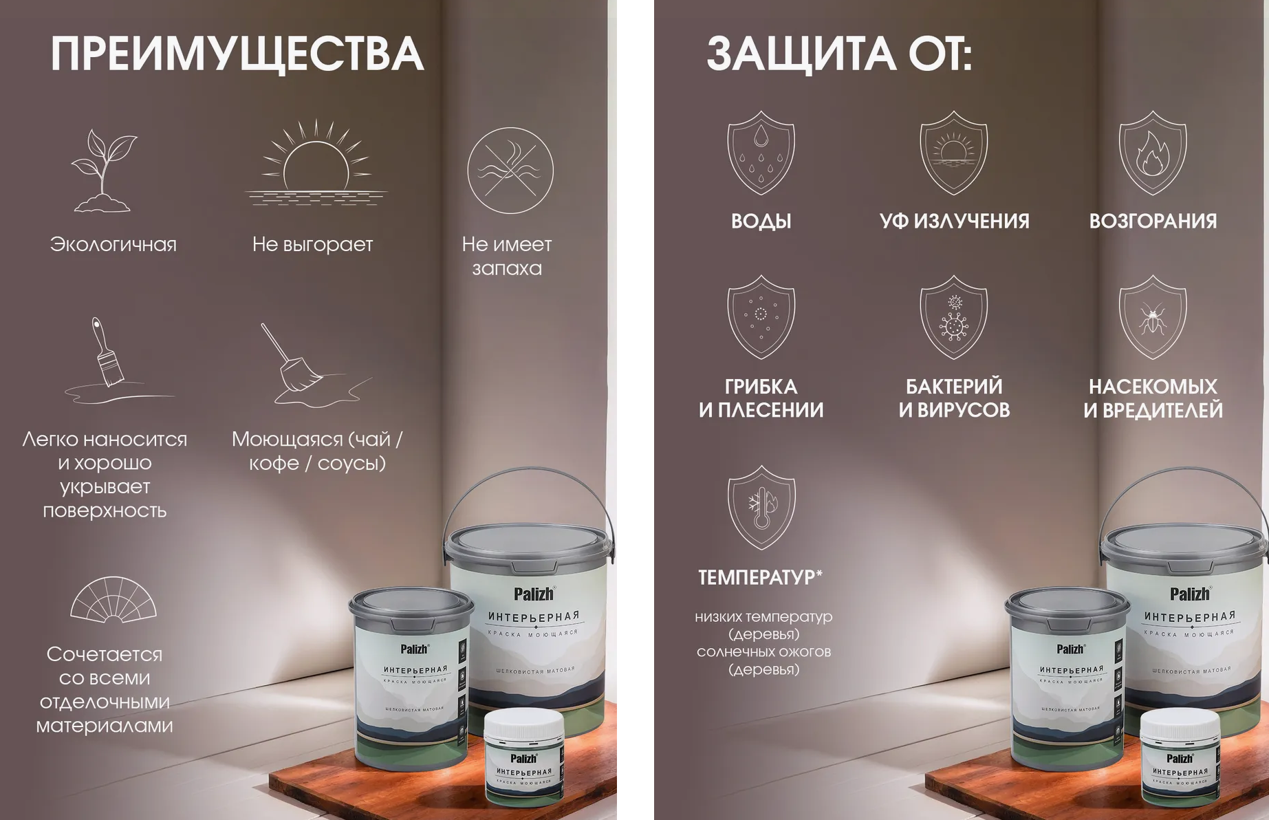 Акриловая краска "Palizh" с шелковисто - матовым эффектом покрытия, без запаха - идеальный выбор краски для дома для ремонтных работ.