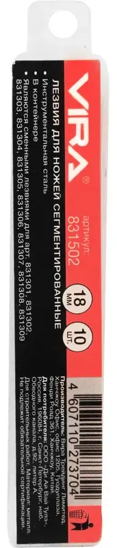 Лезвия для ножей сегментированные 18 мм 10 шт. VIRA 831502; УТ-00000296