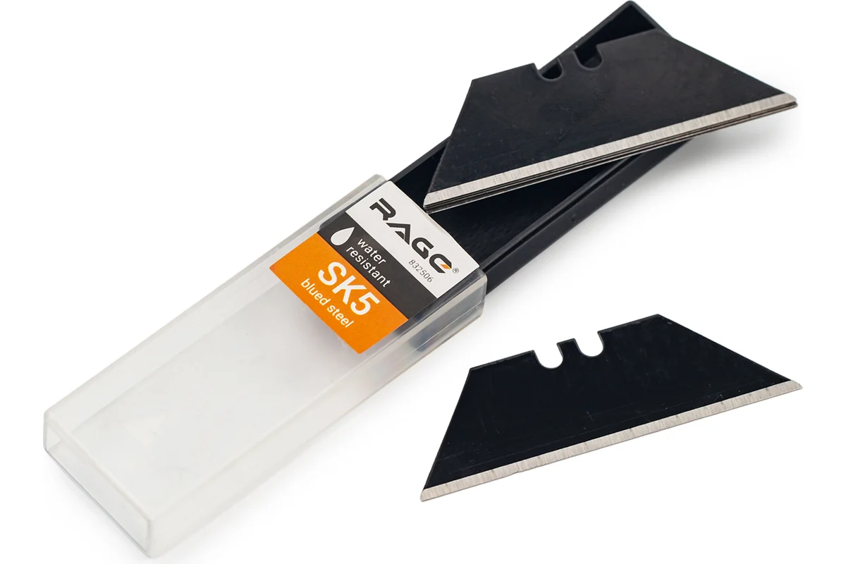 Лезвия для ножей трапециевидные вороненые RAGE by VIRA имеют цельную структуру, поэтому способны выносить большие нагрузки, чем сегментированные лезвия. Лезвия не предназначены для повторного использования и заменяются целиком.
