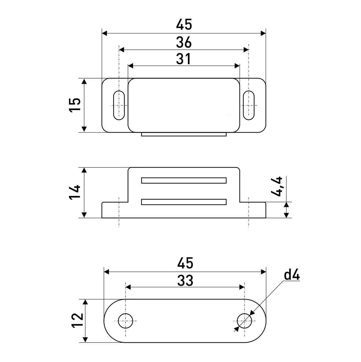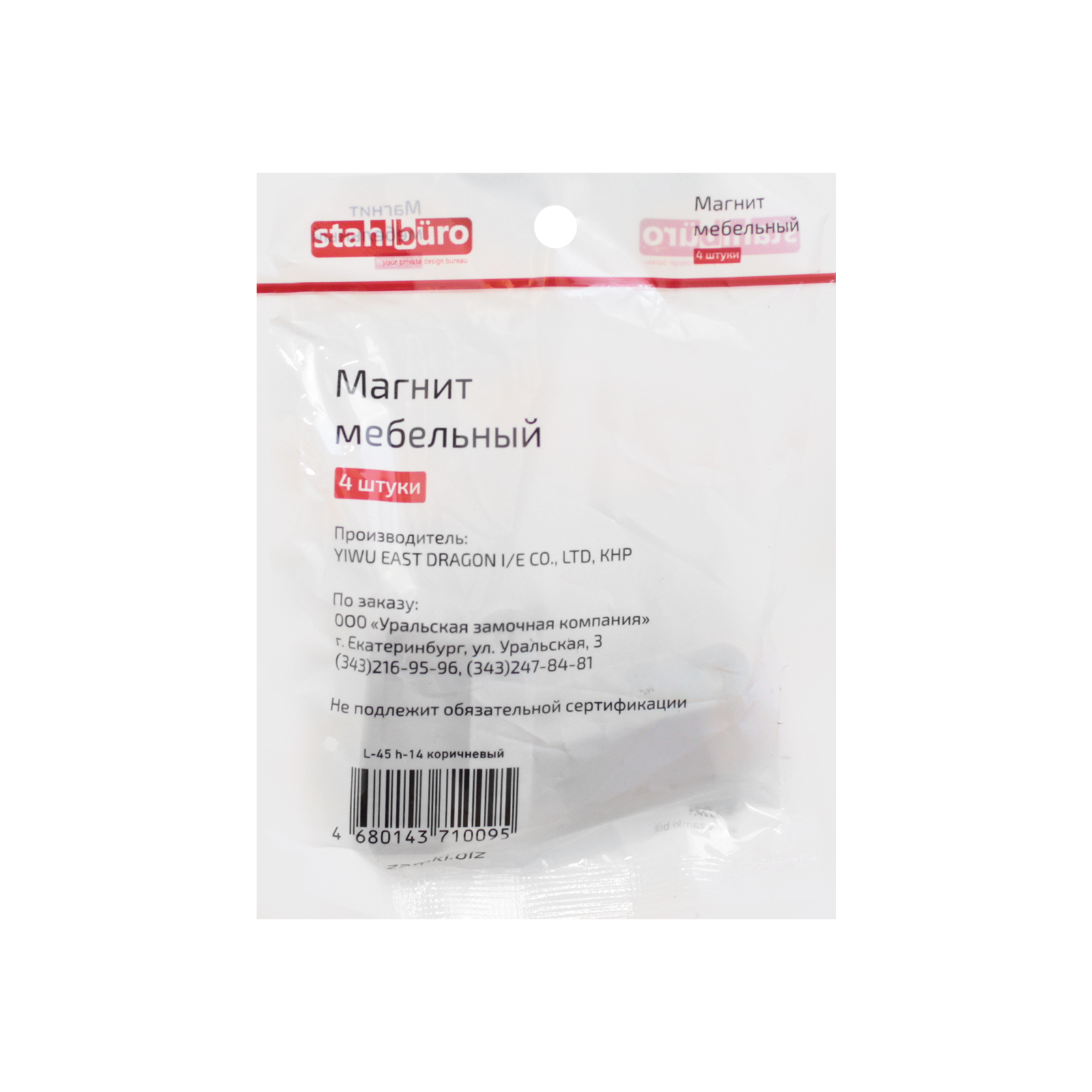 Магнит мебельный L-45, h-14 коричневый уп.4шт. StahlBuro L-42/15935; 11615051