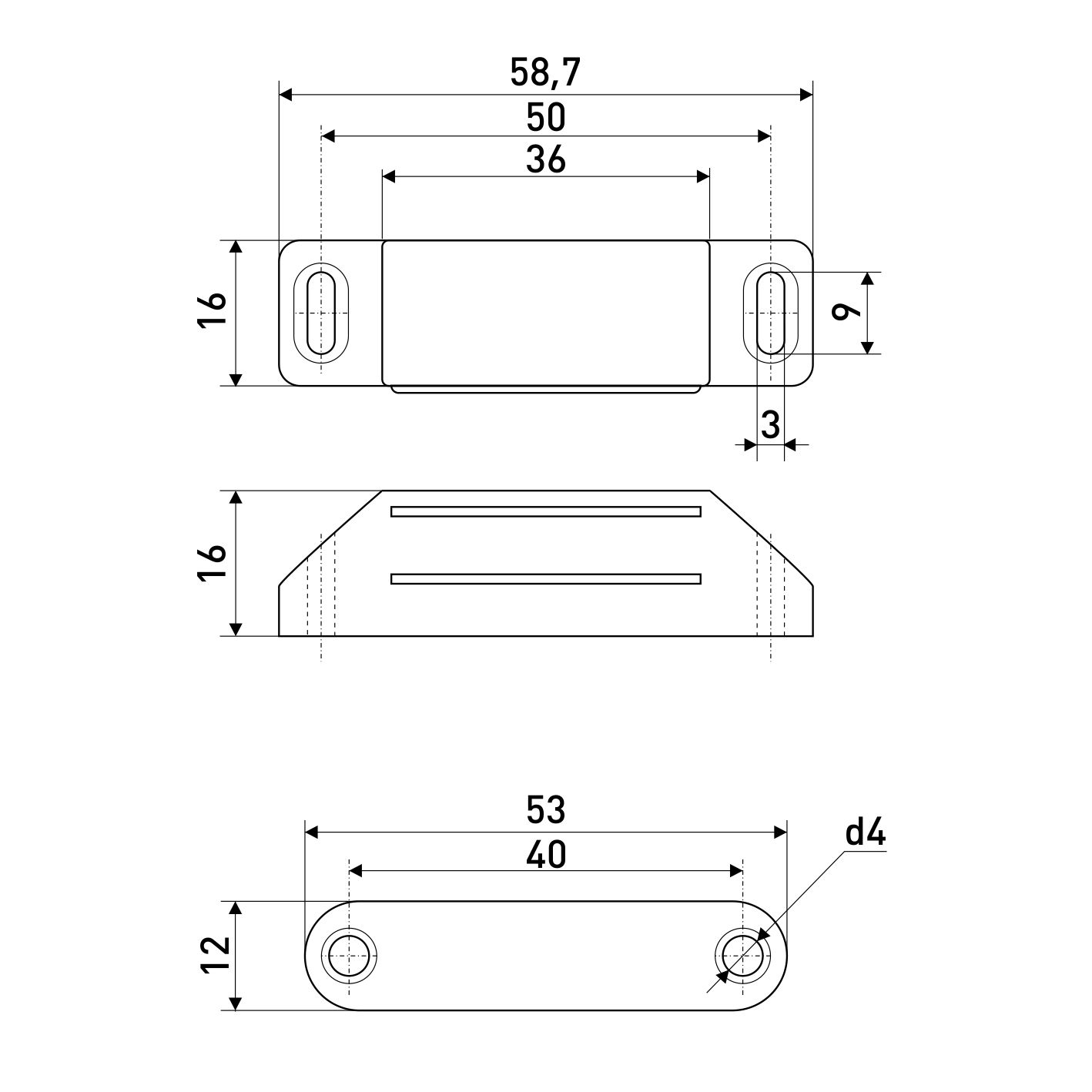 Магнит мебельный L-60, h-15 белый уп.4шт. StahlBuro L-60/15936; 11614621