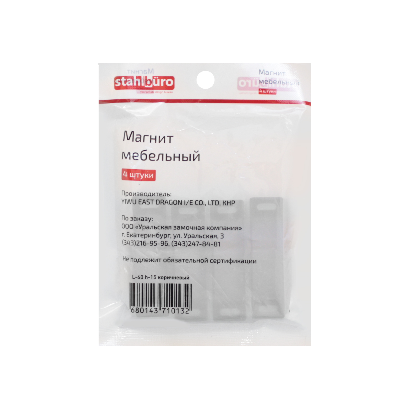Магнит мебельный L-60, h-15 коричневый уп.4шт. StahlBuro L-60/15937; 11615052
