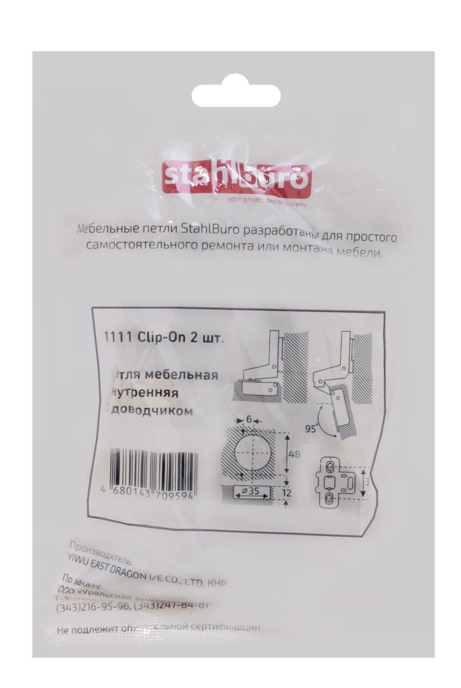 Петля мебельная Clip-On 1111 внутренняя с доводчиком, хром уп.2шт. StahlBuro 15908; 11615063