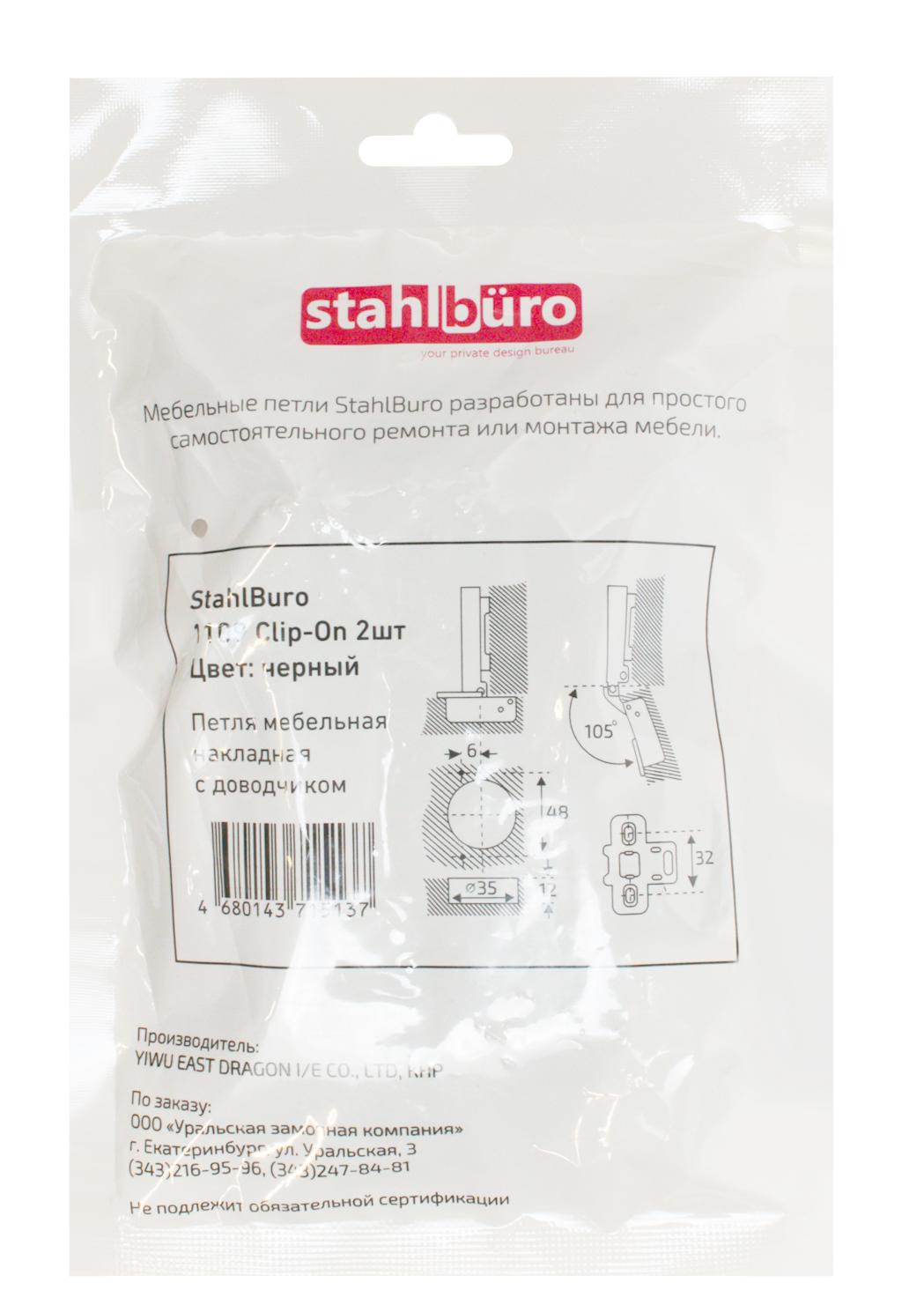 Петля мебельная Clip-On 1109 накладная с доводчиком, черная уп.2шт. StahlBuro 16342; 11615061