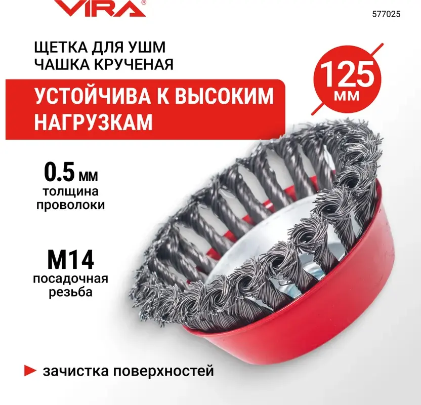 Щетка для УШМ чашка крученая 125 мм VIRA 577025; УТ-00000325