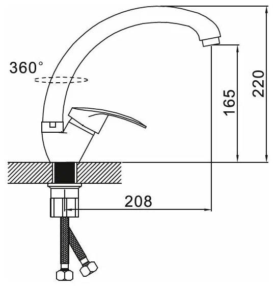 Монтаж смесителя осуществляется горизонтально, что делает его установку простой и быстрой. Гибкая подводка и защитное покрытие изнутри обеспечивают легкость подключения к воде и защиту внутренних компонентов от коррозии.