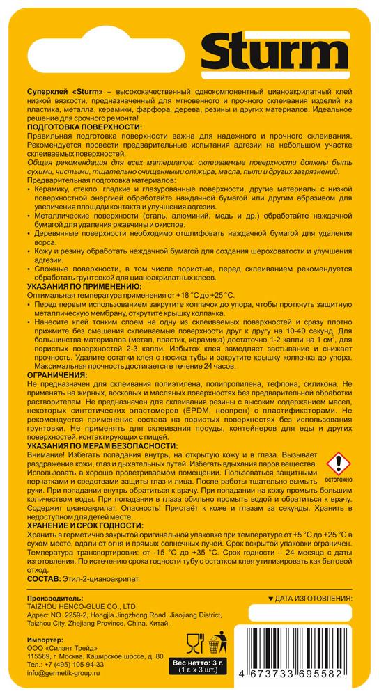 Суперклей 1г х 3шт на единичном блистере, 12 шт. в упаковке STURM 07-17-47; УТ-00000131
