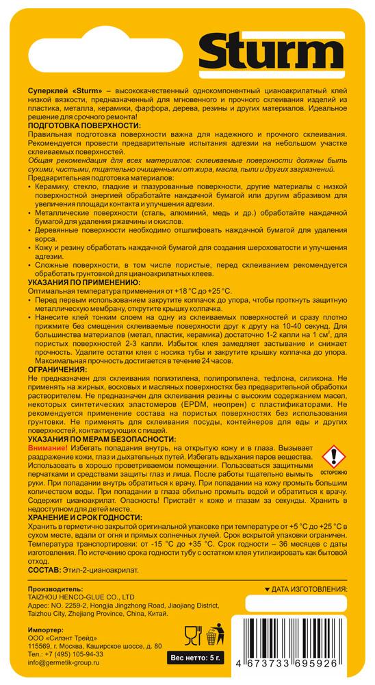 Суперклей 5г на единичном блистере, 12 шт. в упаковке STURM 07-17-67; УТ-00000137