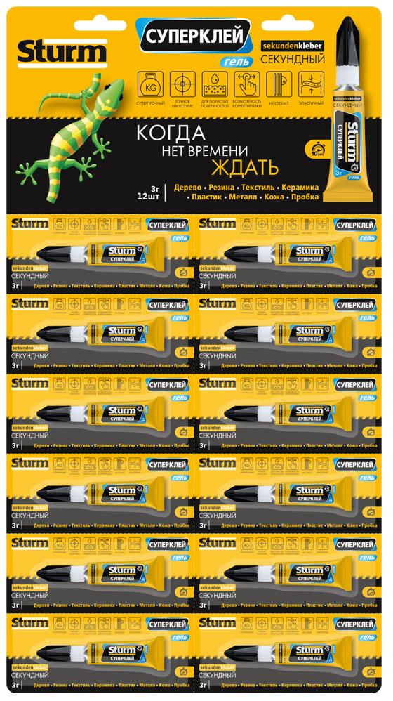 Суперклей-гель 3г на мультикарте, 12 шт. в упаковке STURM 07-17-37; УТ-00000136