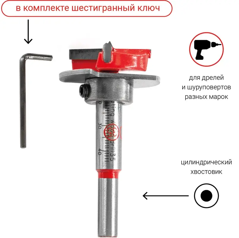 - Диаметр сверла (мм): 35