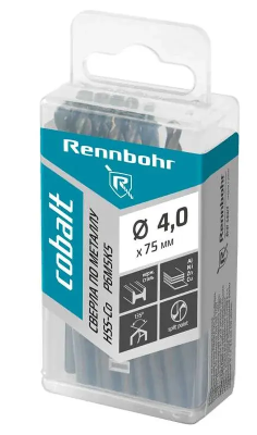 Сверло по металлу ЦХ 4,0х75мм 20 штук в уп. HSS-Co, Р6М5К5, RE2NNBOHR COBALT PROM (671040); 11614998