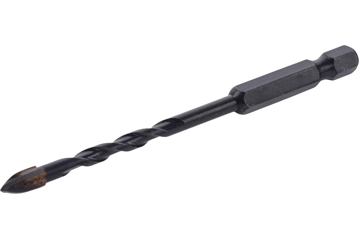 Сверло используется для сверления отверстий в стекле, мраморе, керамической и кафельной плитках. Сверло выполнено из высококачественной стали, режущие кромки выполнены из сплава карбида вольфрама, что обеспечивает высокую прочность и долгое сохранение режущих качеств инструмента даже после длительного использования. Четырехгранная копьеобразная рабочая часть сверла позволяет быстрее сверлить материал и получать более чистое отверстие, увеличивает ресурс сверла вдвое. Широкая спираль с антикоррозийным покрытием обеспечивает быстрый вывод шлама и снижает его налипание на спираль. Сверление с водой обеспечивает более бережное и качественное сверление. Фосфатное покрытие повышает износостойкость, увеличивает твердость и защищает от коррозии, что позволяет сохранять качество и внешний вид оснастки в первоначальном виде в течение долгого времени. Шестигранный хвостовик делает оснастку применимой не только к электроинструментам с зажимным патроном, но и с патронами типа НЕХ.