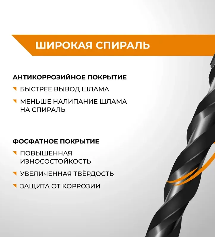 - Особенность: твердосплавная напайка X-типа, широкая спираль с антикоррозийным покрытием