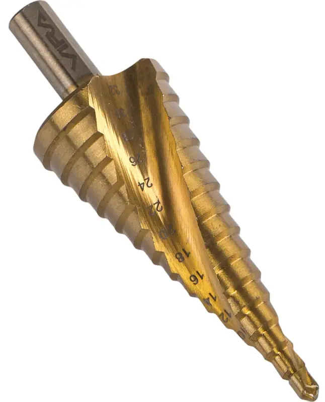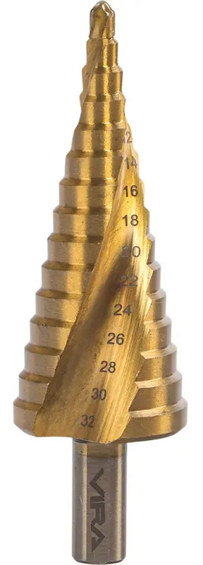 Сверло ступенчатое спиральное TiN с трёхгранным хвостовиком 4-32 мм VIRA